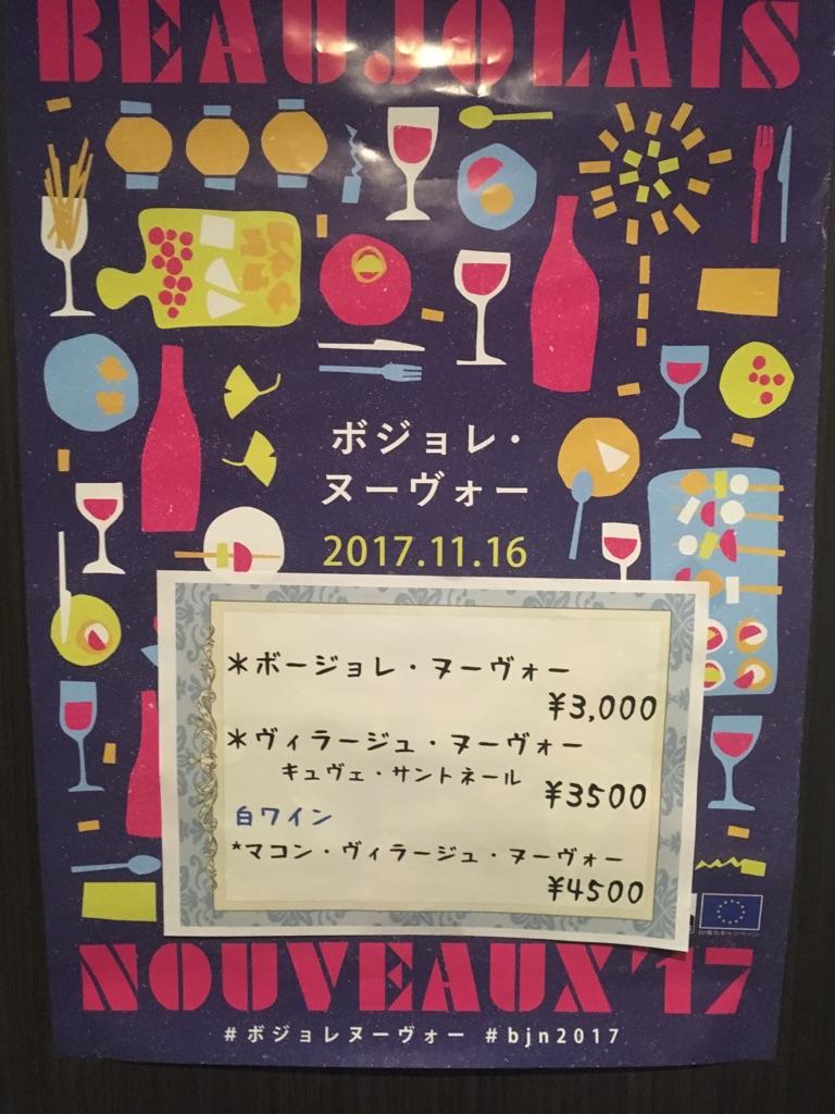 ご無沙汰してます篤です。本日は11月の第3木曜日ボジョレーヌーヴォー解禁日です。イタリアンですが便乗商売しております!ヌーヴォー、ヴィラージュ、白ワインのマコンヴィラージュの3種ご用意しております、初物好きな方ご来店お待ちしております。